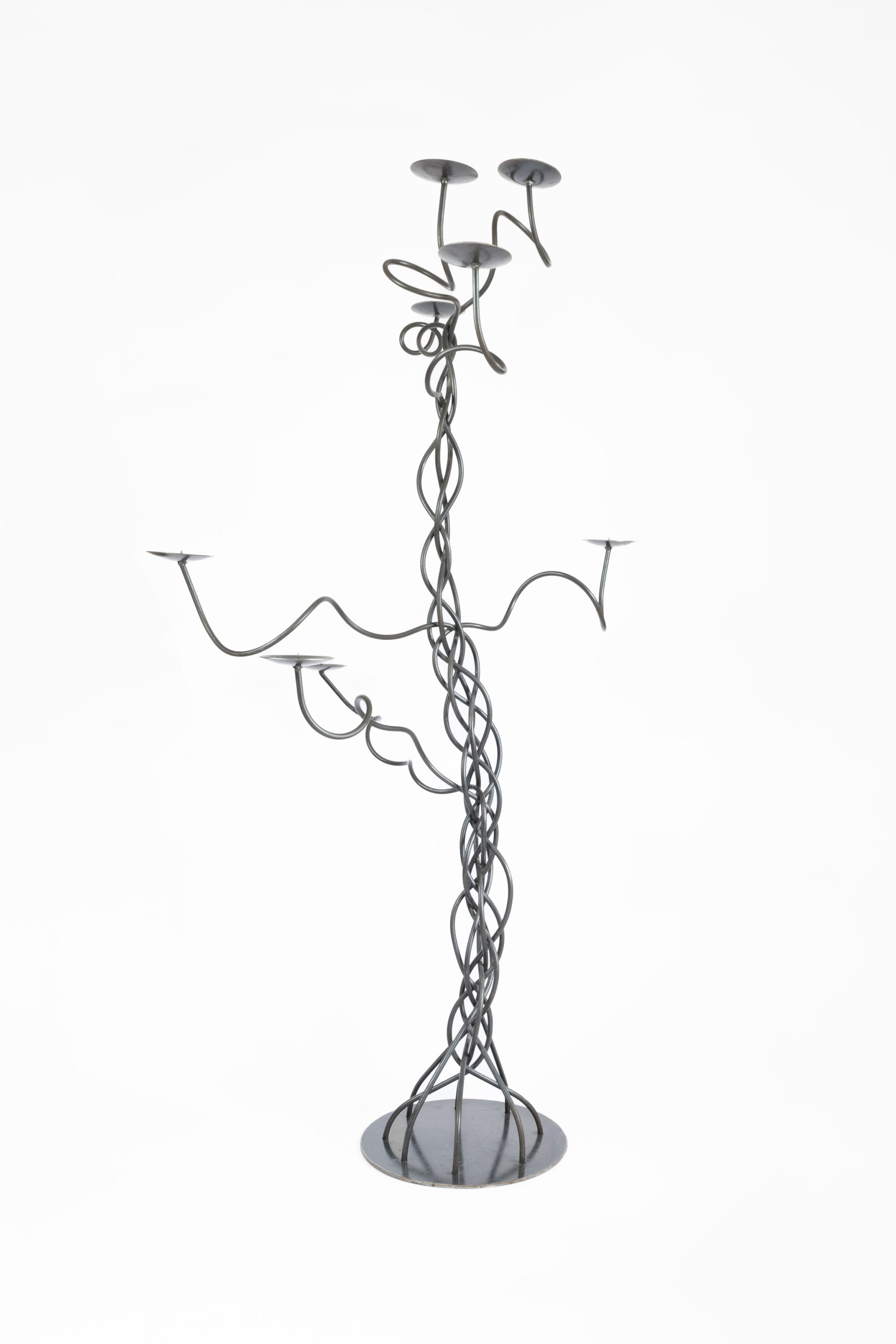 Unusual artisan wrought iron floor candleholder, 1990s. This is a larger version of the two candle holders available, smaller one can be viewed here.