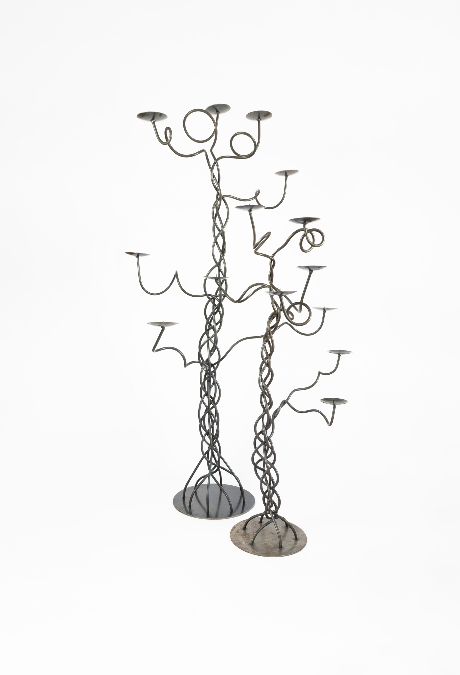 Unusual artisan wrought iron floor candleholder, 1990s. This is a larger version of the two candle holders available, smaller one can be viewed here.